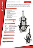 • Frontal Attachment: Where there is no chance to fall in a direction other than feet first, the frontal attachment may be used as a connection for ladder climbing, for guided type fall arresters and also for work positioning. After a fall has occurred or during work positioning, the victim supported by the frontal attachment will result in a sitting body position, with the upper body in an upright position concentrating the weight on the buttocks and thighs. When supported by the frontal attachment, the design of the full body harness is such a that it directs the load directly around the thighs and under the buttocks by means of the sub-pelvic strap. While using the frontal attachment for fall arrest, measures should be taken by a competent person evaluating the application to ensure a fall occurs only feet first. It is also important to limit the allowable free fall distance. • Shoulder Attachment Elements: Always use the shoulder attachment elements as a pair. They are an acceptable attachment for rescue and entry/retrieval. Never use shoulder attachment elements for fall arrest. • Recommendation: The shoulder attachment elements should always be used in conjunction with a yoke which comes with a spreader element keeping the FBH shoulder straps separated properly. • Waist, Rear Attachment: The waist, rear attachment is only meant to be used solely for travel restraint. The waist, rear attachment element is NOT to be used for fall arrest. The waist, rear attachment shall never be used to support the entire body weight of the user and shall strictly be subjected to minimal loading through the waist. • Hip Attachment Elements: The hip attachment elements shall be used solely for work positioning and shall always be used as a pair. The hip attachment elements are NOT meant for fall arrest. These hip attachments are often used for utility workers climbing poles, construction workers tying rebar and using the same to climb on form walls, and also used by arborists for work positioning. Users are cautioned not to store the unused end of a fall arrest lanyard on the hip attachment elements to avoid any tripping hazards. Excessive loading could be caused to the full body harness and the user through the unused portion of the Multiple Leg Lanyard. • Suspension Seat: Always use the suspension seat attachment elements as a pair, and solely for work positioning. The suspension seat attachment elements are not meant for fall arrest. Suspension seat attachments are designed to be used for work involving suspension at height for longer durations, allowing the user to comfortably sit on the suspension seat. The best examples for the use of a suspension seat are window cleaning of large buildings, painting of facades, etc. ADDITIONAL INFORMATION FOR FULL BODY HARNESS • Training: It is essential that the users of this type of equipment receive proper training and instruction, including detailed procedures for the safe use of such equipment in their work application. ANSI/ASSE Z359.2, Minimum Requirements for a Comprehensive Managed Fall Protection Program, establishes guidelines and requirements for an employer’s managed fall protection program. These include policies, duties and training, fall protection procedures, eliminating and controlling fall hazards, rescue procedures, incident investigations, and evaluating program effectiveness. • Correct Fit: Correct fit of a full body harness is essential to proper performance. Users must be trained to select the proper size and maintain the fit of their full body harness. Users must follow manufacturer’s instructions for proper fit and sizing, paying particular attention to ensure that buckles are connected and aligned correctly, leg straps and shoulder straps are kept snug at all times, chest straps are located in the middle chest area and leg straps are positioned and snug to avoid contact with the genitalia should a fall occur. KStrong full body harnesses meet ANSI/ASSE Z359.11 and are intended to be used with other components of a PFAS that limit maximum arrest forces to 1800 lbs. (8 kN) or less. • Suspension Intolerance: Suspension intolerance also known as suspension trauma or orthostatic intolerance, is a serious condition that can be controlled with prompt rescue and post fall suspension relief devices. A conscious able user may deploy a suspension relief device allowing the user to remove tension from around the legs, freeing blood flow, which can delay the onset of suspension intolerance. An attachment element extender is not intended to be attached directly to an anchorage or anchorage connector for fall arrest. An energy absorber must be used to limit maximum arrest forces to 1800 lbs.(8 kN). The length of an attachment element extender may affect free fall distances and free fall clearance calculations. • Full Body Harness Stretch: The amount the FBH component of a personal fall arrest system can stretch and deform during a fall can contribute to the overall elongation of the system in stopping a fall. It is important to include the increase in fall distance created by FBH Stretch, as well as the FBH connector length, the settling of the user’s body in the FBH and all other contributing factors when calculating total clearance required for a particular fall arrest system. • Due to the nature of soft loop connections, it is recommended that soft loop attachments only be used to connect with other soft loops or Karabiners. Snap hooks should not be used unless approved for the application by the manufacturer. MAINTENANCE, SERVICE AND STORAGE • A full body harness can be cleaned with water and a mild soap solution. However, if a harness is excessively dirty, or there is a build-up